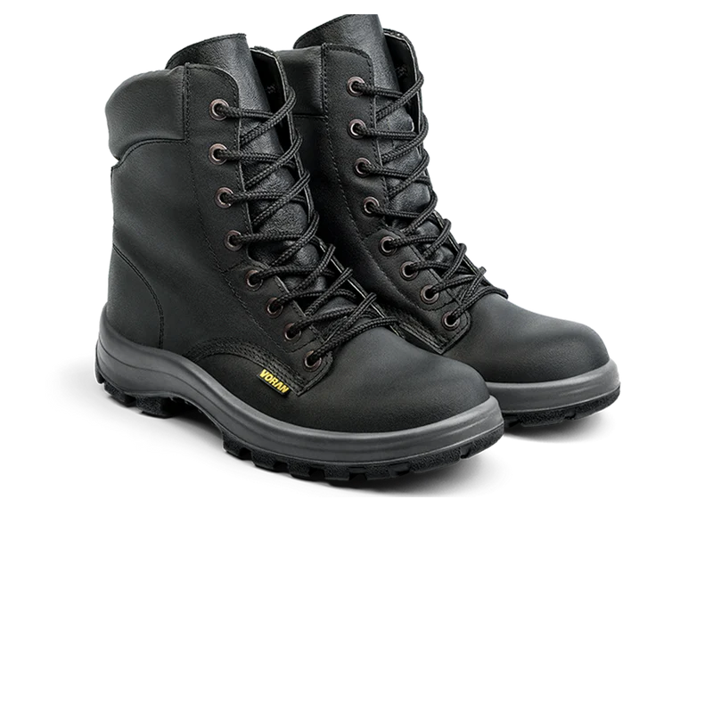 Borceguí de seguridad. Modelo Prusiano. Cuero Flor de primera calidad. Diseño industrial. Dieléctrico. Ideal para trabajar cómodos en condiciones muy exigidas.